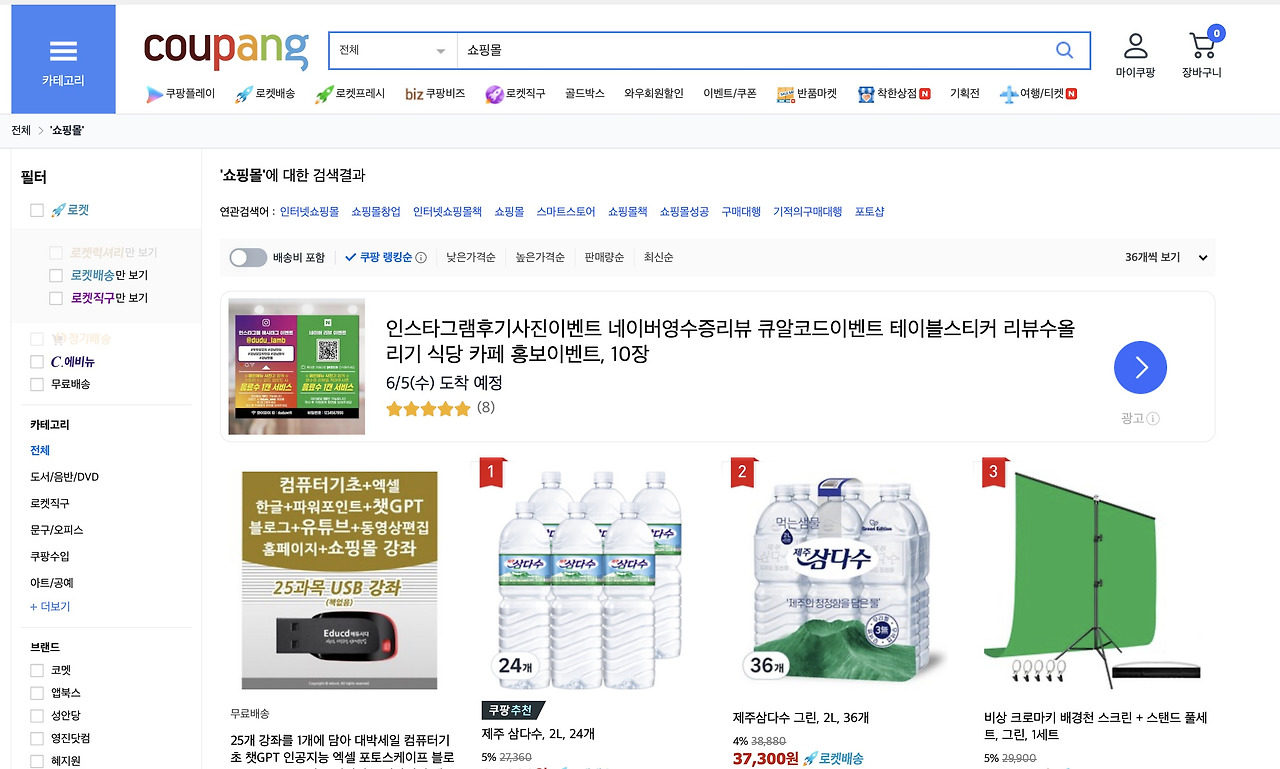 쿠팡은 한국에서 가장 인기 있는 온라인 쇼핑몰 중 하나로, 다양한 상품과 빠른 배송 서비스로 많은 사랑을 받고 있습니다.