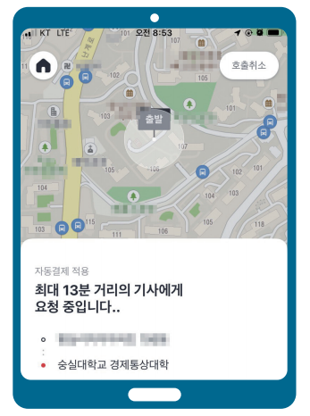 호출된 택시는 실시간으로 위치를 확인할 수 있습니다.