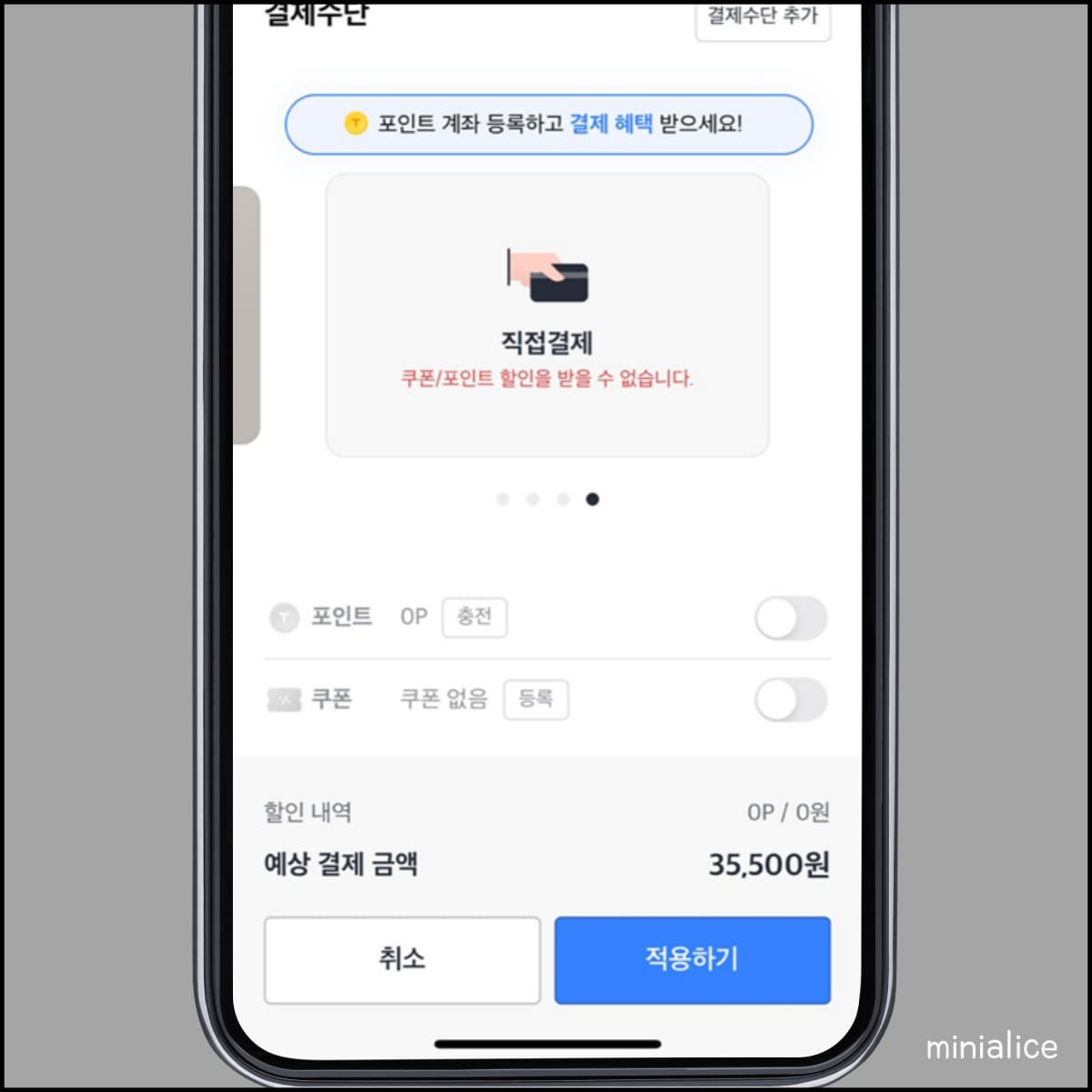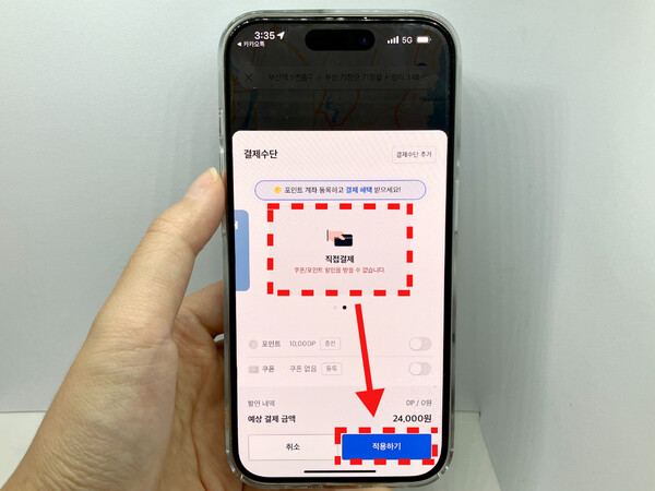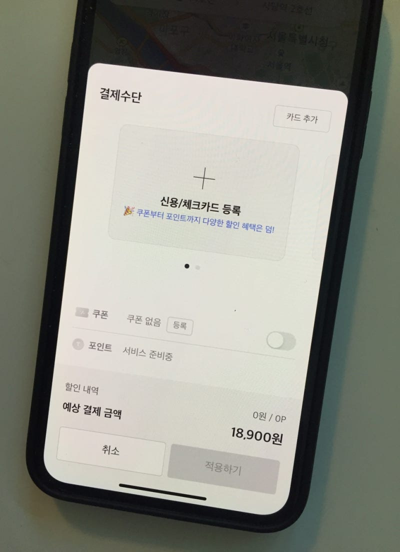 결제 방법은 앱 내에서 미리 설정할 수 있습니다.