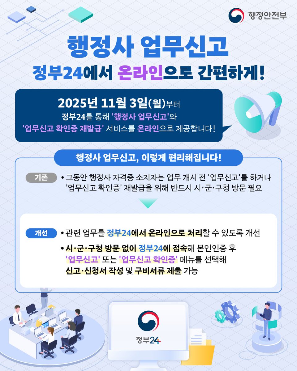 정부24를 통해 주민등록증 발급, 각종 증명서 발급, 보조금 신청 등 다양한 민원 업무를 처리할 수 있습니다.