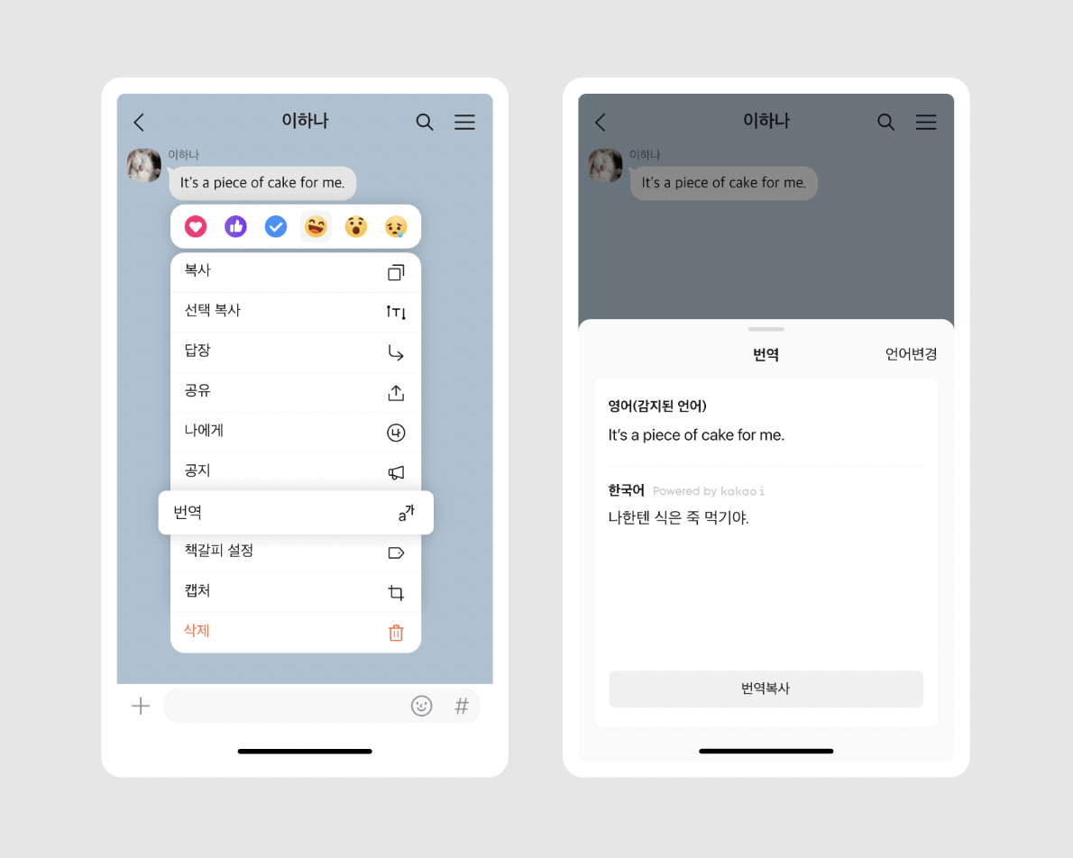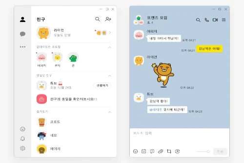 친구와의 대화는 물론, 파일 전송, 사진 공유, 이모티콘 사용 등 다양한 기능을 지원합니다.