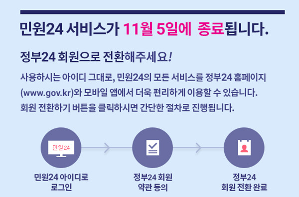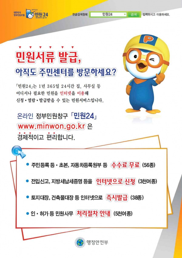 국민이 보다 편리하게 정부 서비스를 이용할 수 있도록 도와주는 민원24시를 적극 활용해 보시기 바랍니다.