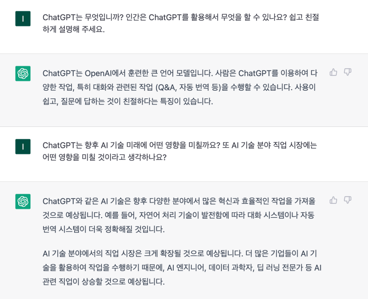 사용자는 텍스트를 입력하면 ChatGPT가 그에 대한 응답을 생성하는 방식으로 작동합니다.