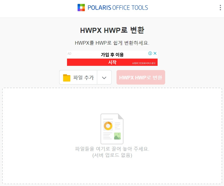 - 온라인 변환 도구 접속 : Polaris Office Tools와 같은 사이트에 접속합니다.