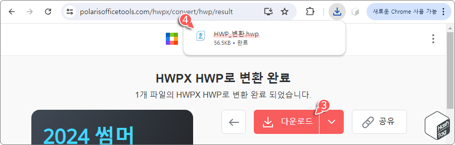 - 파일 다운로드 : 변환이 완료되면 HWP 파일을 다운로드합니다.