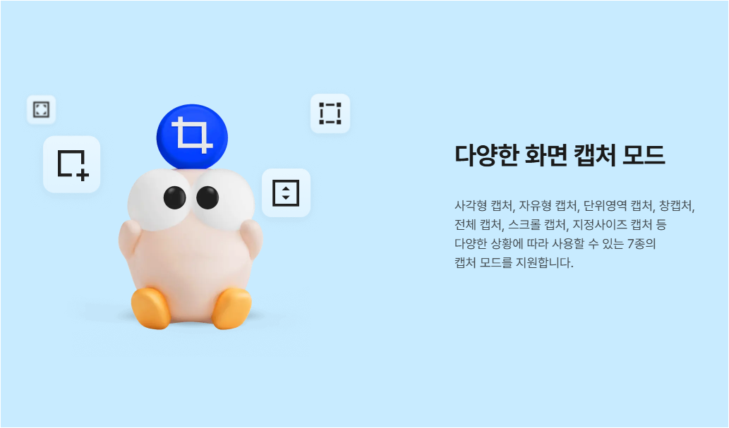 - 캡처 모드 선택 : 다양한 캡처 모드 중에서 원하는 모드를 선택합니다. 예를 들어, '스크롤 캡처'를 선택하여 긴 웹페이지를 한 번에 캡처할 수 있습니다.