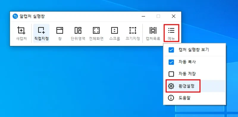 - 단축키 설정 : 프로그램 환경설정에서 자주 사용하는 캡처 기능에 단축키를 설정할 수 있습니다. 이를 통해 더욱 빠르게 캡처할 수 있습니다.