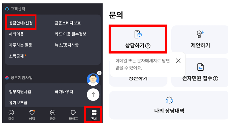 하지만 상담원이 필요할 경우, 특정 시간에만 연결이 가능하다는 점을 유의해야 합니다.