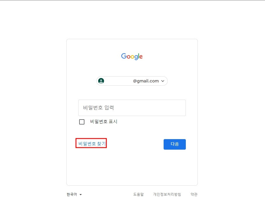 - 이메일 또는 전화번호 입력 : 구글 계정의 이메일 주소 또는 전화번호를 입력합니다.