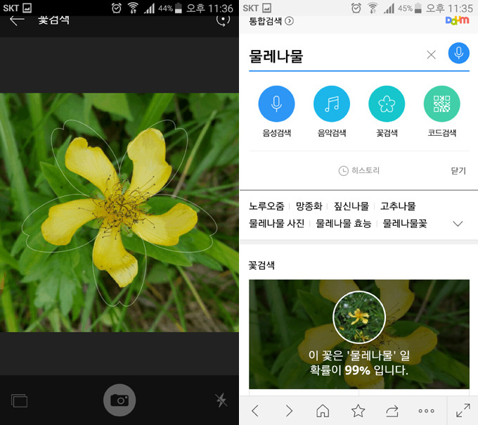 다음 꽃검색 어플의 주요 기능