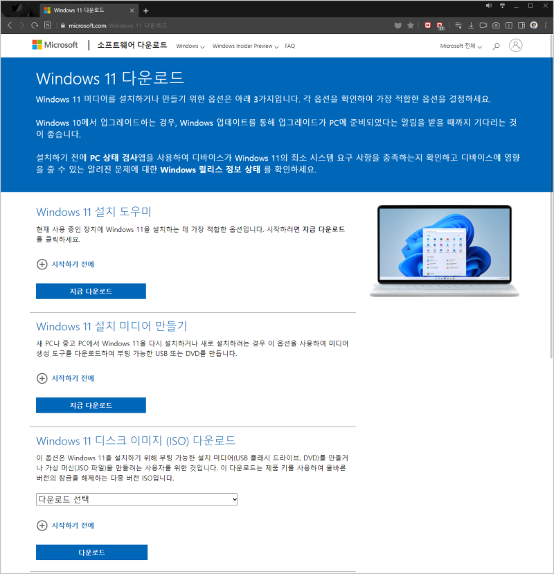 윈도우11 설치 전, 자신의 PC가 위의 조건을 충족하는지 확인해야 합니다.