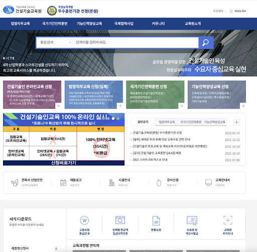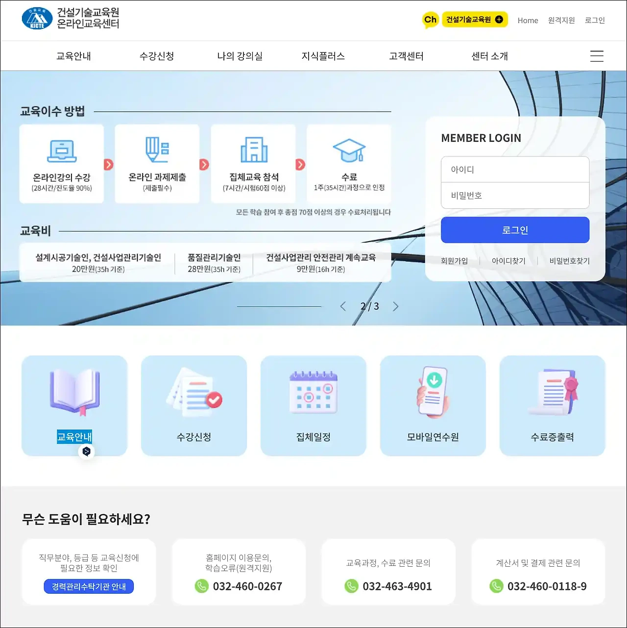 건설기술교육원 온라인 교육센터는 건설 분야의 전문 인력을 양성하기 위해 다양한 온라인 교육 과정을 제공하고 있습니다.