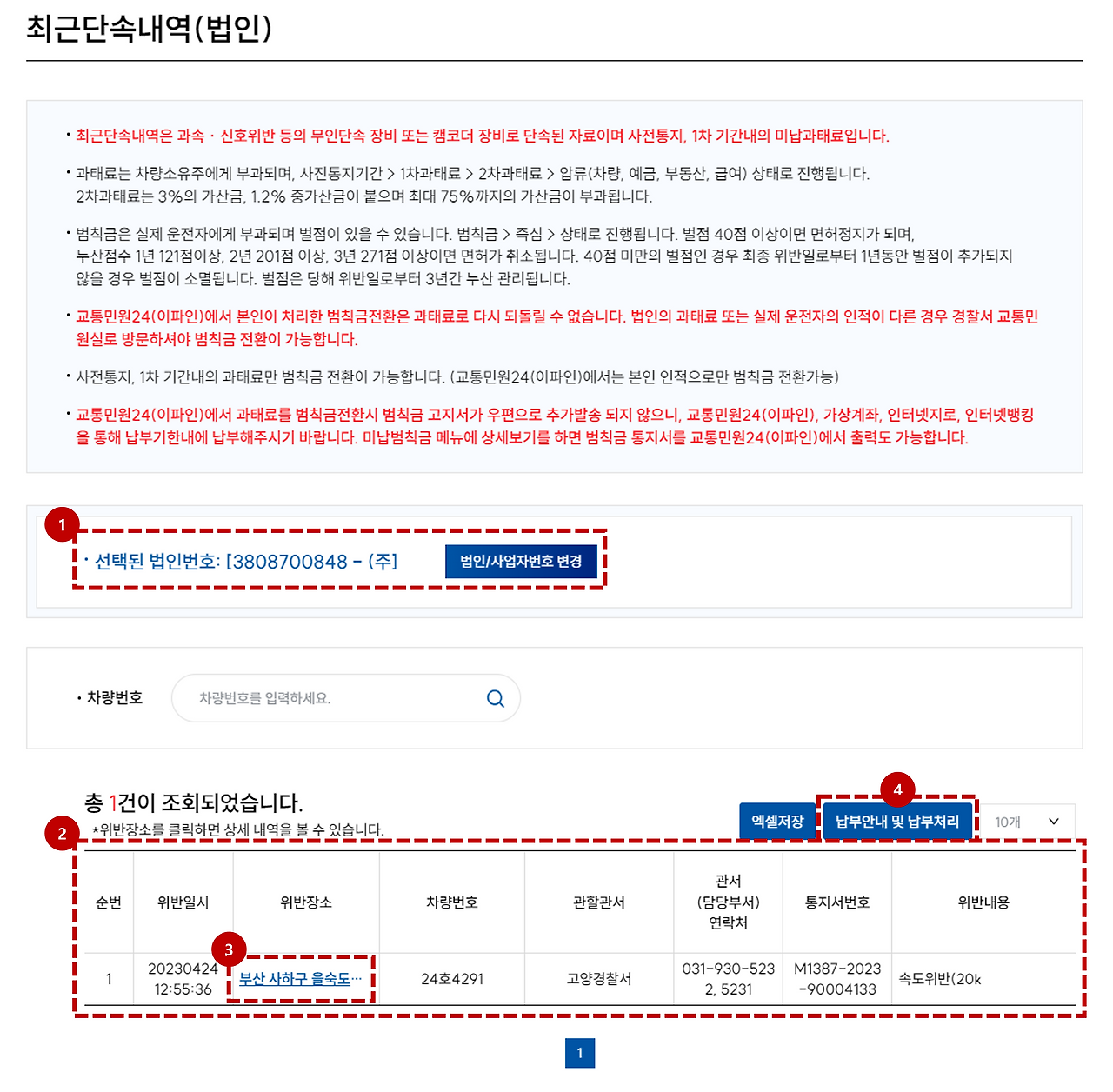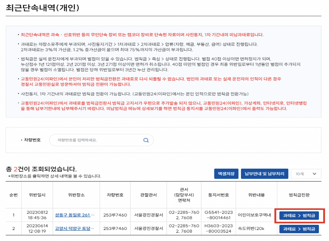 - 과태료 및 범칙금 조회 및 납부 : 미납된 과태료와 범칙금을 조회하고, 온라인으로 납부할 수 있습니다.