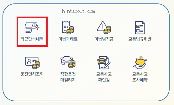 - 교통법규 위반 조회 : 최근의 교통법규 위반 내역을 확인할 수 있습니다.