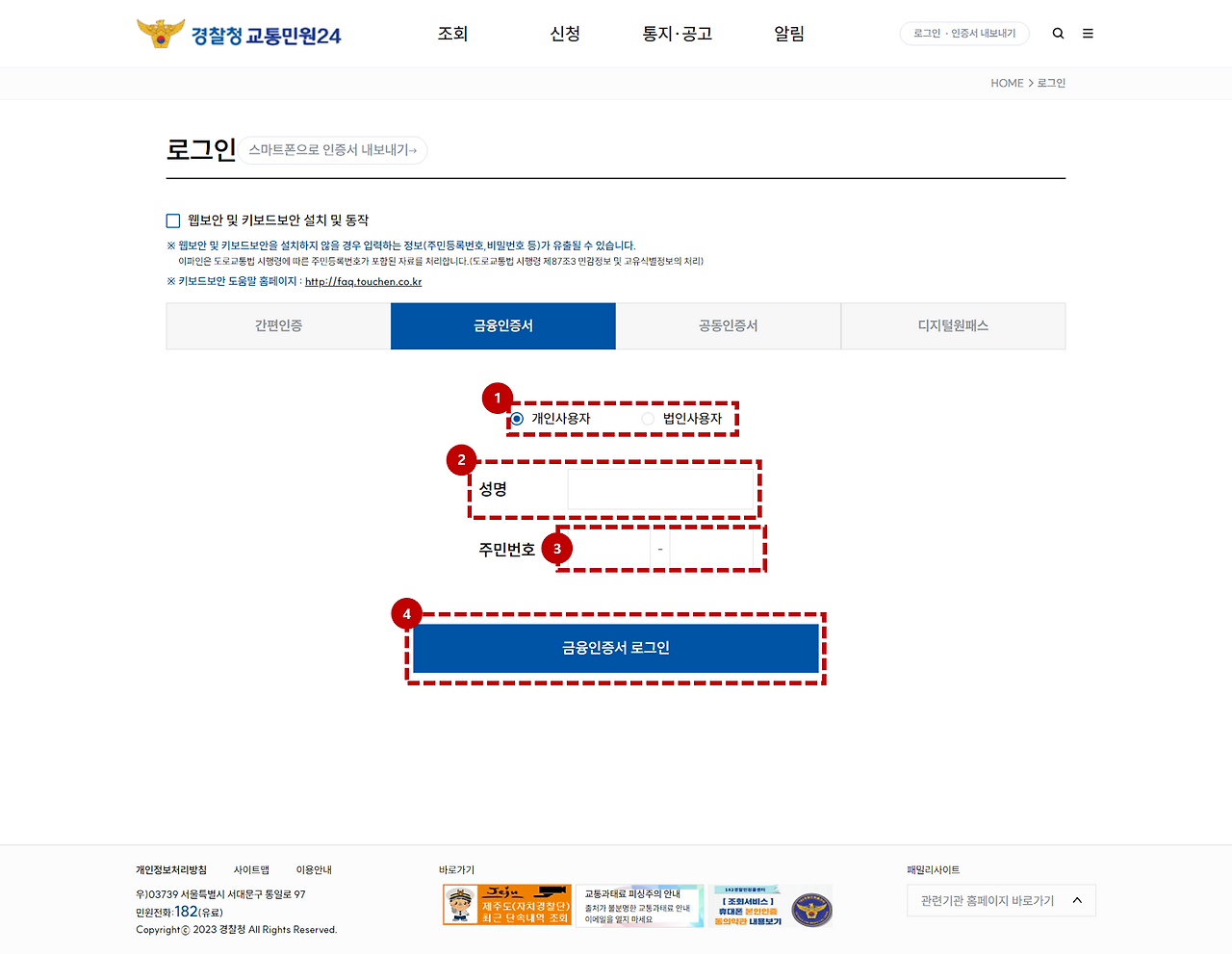 - 개인 공인인증서가 필요합니다. 이를 통해 안전하게 로그인할 수 있습니다.