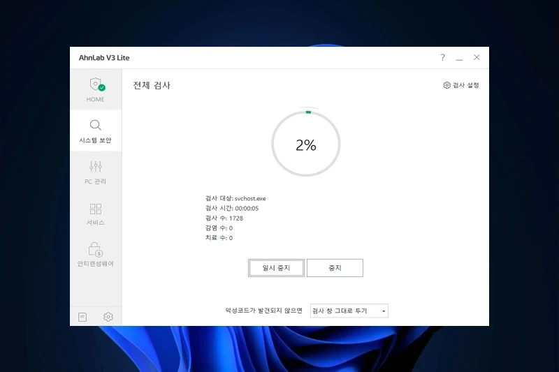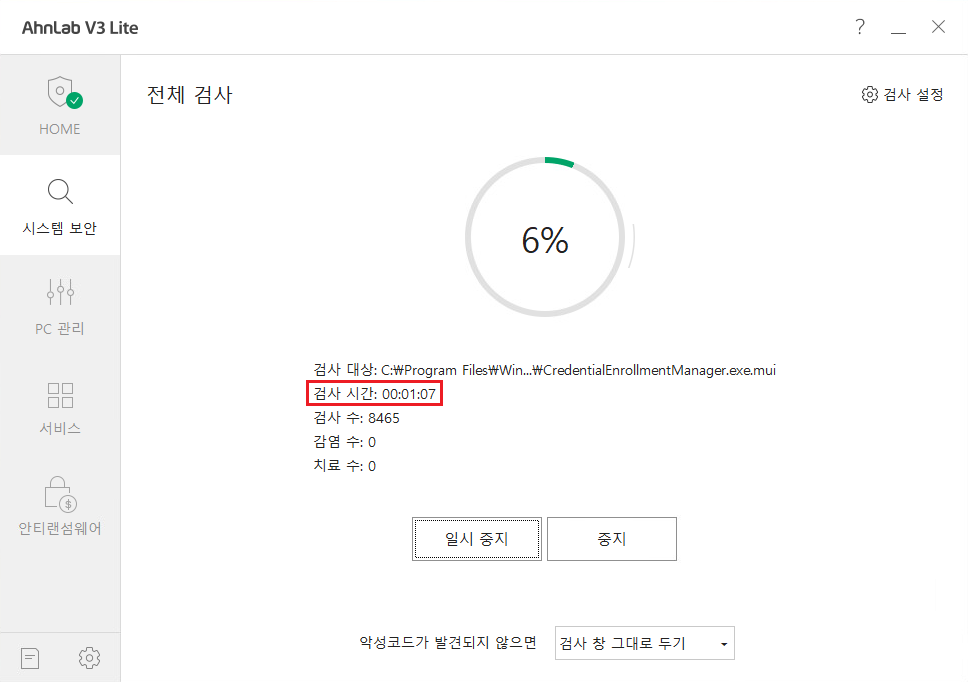 정밀검사는 보다 철저하게 시스템을 검사하며, 모든 파일을 분석하여 숨겨진 위협을 찾아냅니다.