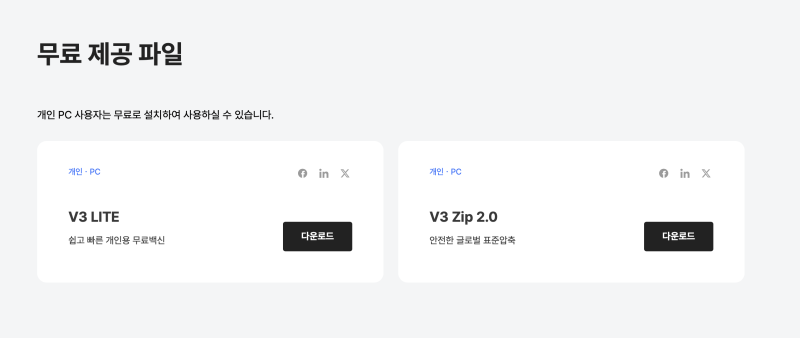 해당 섹션에서 V3 Lite를 선택한 후, 다운로드 버튼을 클릭하여 설치 파일을 받아옵니다.