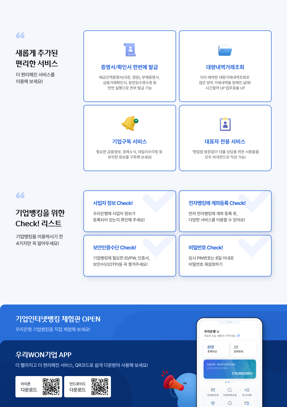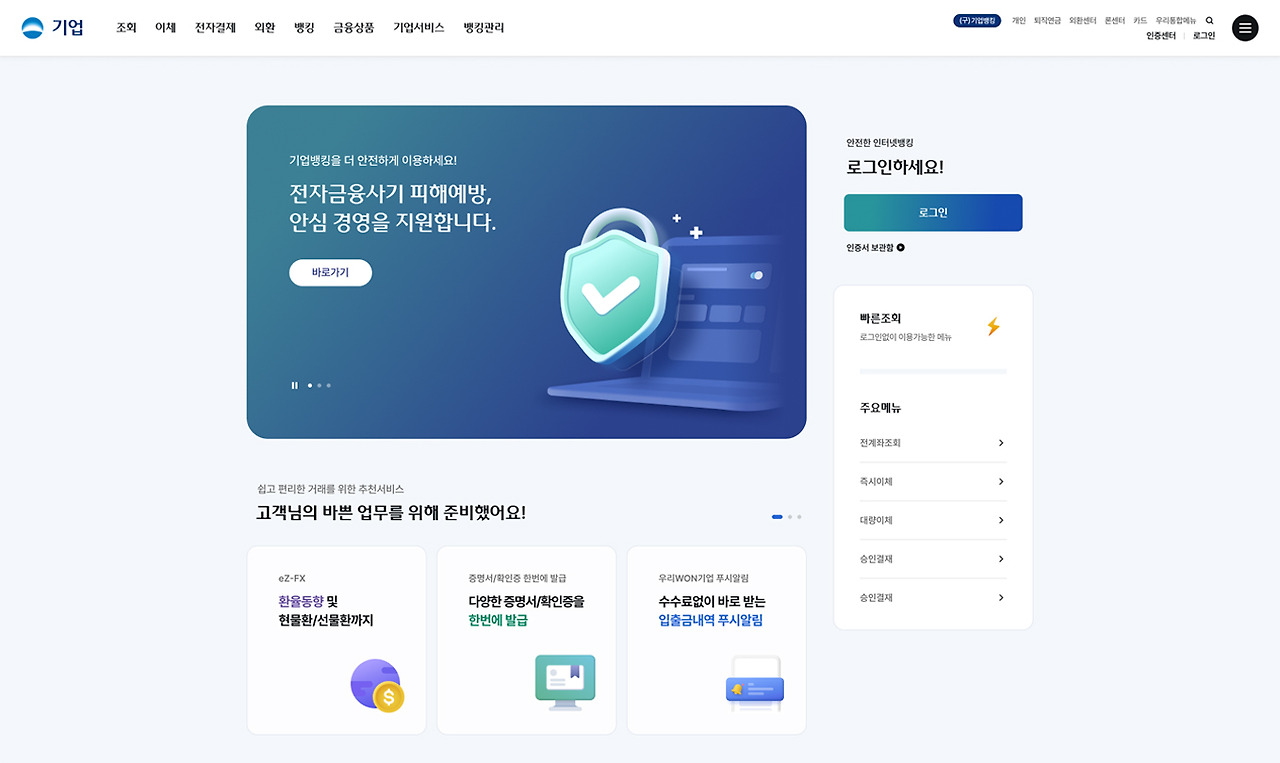 기업 고객들은 이 서비스를 통해 이체, 결제, 계좌 관리, 자산 관리 등 다양한 금융 업무를 손쉽게 처리할 수 있습니다.