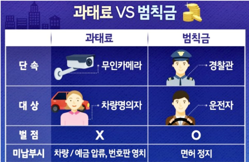 예를 들어, 신호 위반, 속도 위반, 주정차 위반 등이 이에 해당합니다.