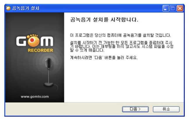 곰 녹음기를 다운로드한 후, 설치 과정은 아래와 같습니다: