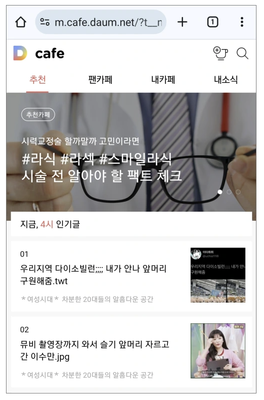 - 브라우저 열기 : 모바일 웹 브라우저를 열고, 다음카페 웹사이트에 접속합니다.