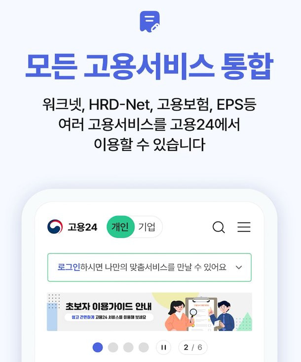 특히, 고용보험, HRD-net, 국민취업지원 등 여러 홈페이지가 통합되어 있어 매우 편리합니다.